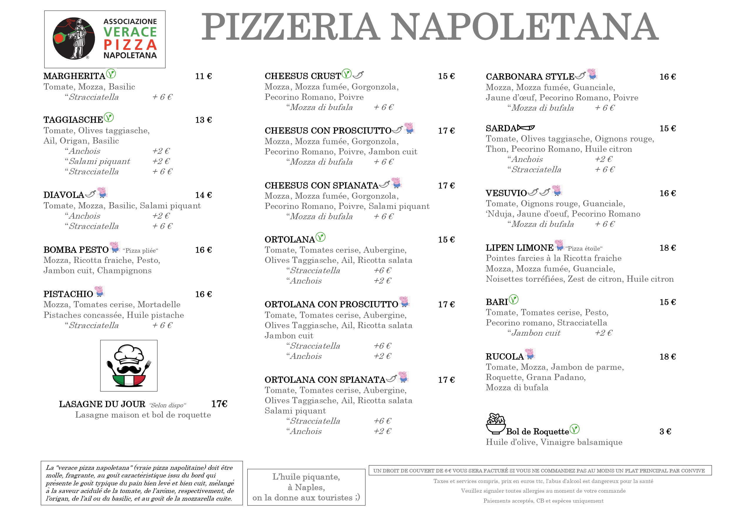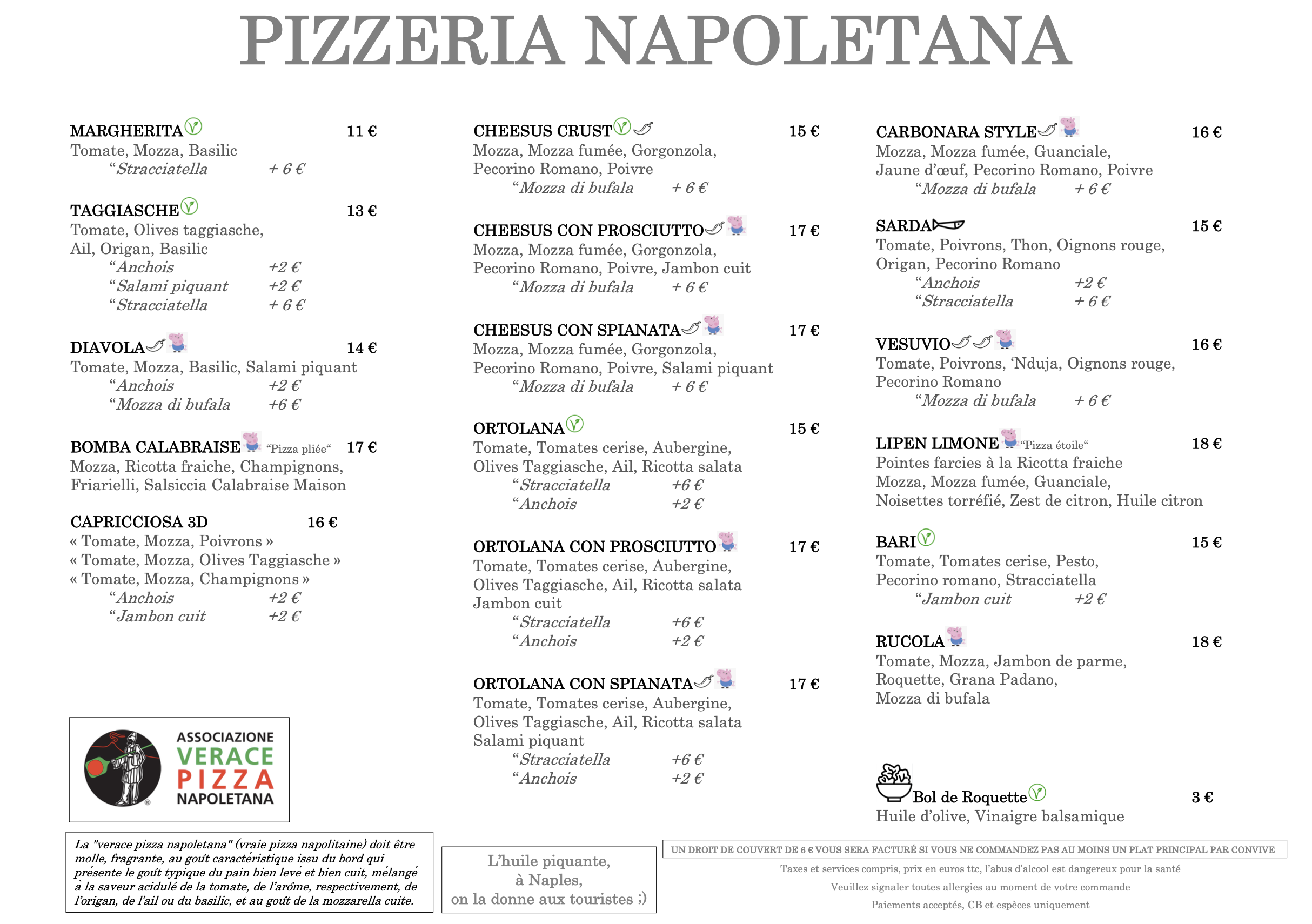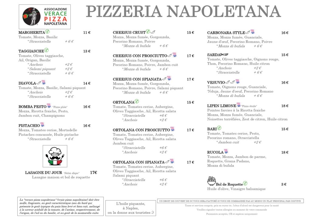 Pizzeria Panettone est un établissement spécialisé dans la pizza napolitaine authentique. Célèbre pour son respect des traditions culinaires de Naples, Pizzeria Panettone a acquis une reconnaissance prestigieuse en recevant le label de «l’Associazione Verace Pizza Napoletana». Ce label est une marque de distinction rare, réservée aux pizzerias qui respectent les méthodes et ingrédients traditionnels de la pizza napolitaine. Pizzeria Panettone a l’honneur d’être le sixième restaurant en France à obtenir cette distinction, témoignant de son engagement envers l’excellence et l’authenticité dans la préparation de ses pizzas.